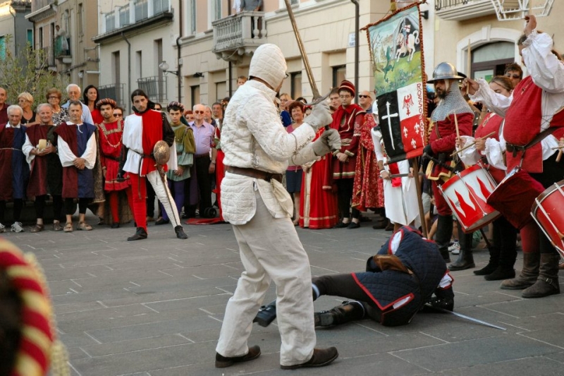 L’antico attraverserà quindi le strade di Guardiagrele creando quel quadro suggestivo e surreale tipico delle ricostruzioni medievali e possibile solo grazie all’impegno di quanti dietro costumi di velluto, tamburi e bandiere uniscono impegno e passione. I figuranti saranno molti e sotto cappelli e vestiti pesanti non si riconosceranno neppure ma bisogna ricordare che lo spirito della manifestazione stessa è proprio in loro. ”Rifare le storie locali” non è altro che indossare abiti che non ci appartengono, essere figuranti di una storia antica.