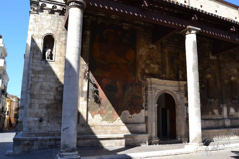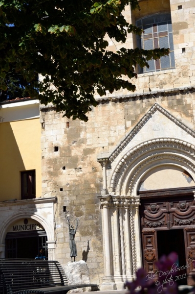 « Guardiagrele, la città di pietra, risplendeva al sereno di maggio. Un vento fresco agitava le erbe su le grondaie. Santa Maria Maggiore aveva per tutte le fenditure, dalla base al fastigio, certe pianticelle delicate, fiorite di fiori violetti, innumerevoli cosicche' l'antichissimo Duomo sorgeva nell'aria cerulea tutto coperto di fiori marmorei e di fiori vivi. »