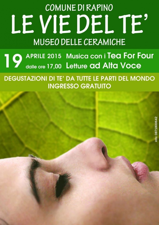 L’Amministrazione Micucci è lieta di presentare l’appuntamento “Le Vie del Tè”: domenica 19 aprile a partire dalle ore 17, la sala grande del Museo delle Ceramiche (location scelta vista l’affinità esistente tra il sorseggiare del buon tè e l’utilizzo della tazza in ceramica) si trasformerà in una tea-room per accogliere quanti desiderano degustare una buona e salutare tazza di tè, scegliendo tra le diverse miscele provenienti dalla Cina, dall’Indonesia, dal Nepal e dal Madagscar.