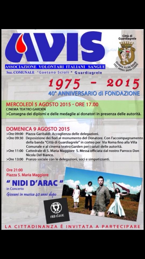 Il 9 agosto 2015 intera giornata dedicata ai festeggiamenti per i 40 anni dell'Avis di Guardiagrele.