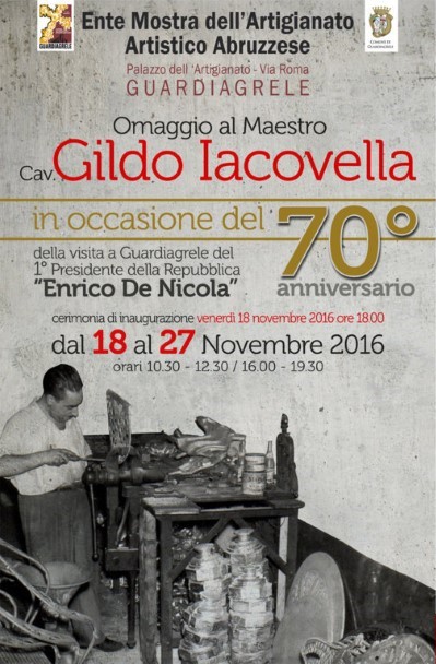 70 anni dopo, con un clima decisamente diverso, quest'opera, insieme ad altri pezzi della produzione del Maestro Cav. Iacovella, torna sotto i riflettori grazie al figlio, Carlo Iacovella, che ha condotto un importante lavoro d ricerca sull'opera del padre, e grazie all'Ente Mostra dell'Artigianato Artistico Abruzzese che ha scelto di omaggiare l'artista con un'esposizione che dal 18 al 27 novembre occuperà la Sala Rocco di Giuseppe del Palazzo dell'Artigianato in Via Roma 26 a Guardiagrele, dove dalle ore 18.00 del 18 novembre si terrà l'inaugurazione dell'esposizione.
