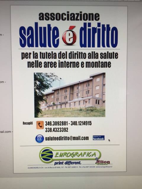 “Ieri sera abbiamo finalmente costituito l'associazione “Salute è Diritto”, a difesa dell'Ospedale di Guardiagrele e della salute della popolazione dei comuni limitrofi.