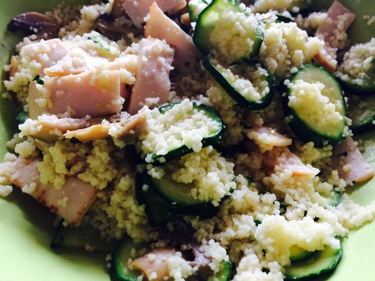 Tagliate a listarelle il petto di tacchino e grigliatelo velocemente, poi unitelo alle zucchine e al cous cous.