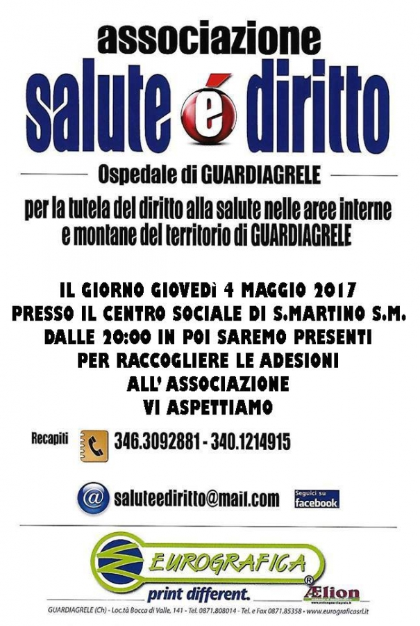 Dopo l’ultima riunione tenutasi presso la sede dell’Agenzia Sanitaria Regionale di Pescara il 26 giugno 2017, l’Associazione "Salute è Diritto" con sede a Guardiagrele, ha proposto un nuovo tavolo di lavoro riguardo alla programmazione sanitaria dell'Ospedale di Guardiagrele.