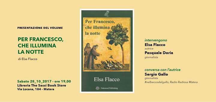 Appuntamento a sabato 28 ottobre, tra i sassi di Matera e le pagine di "Per Francesco, che illumina la notte".