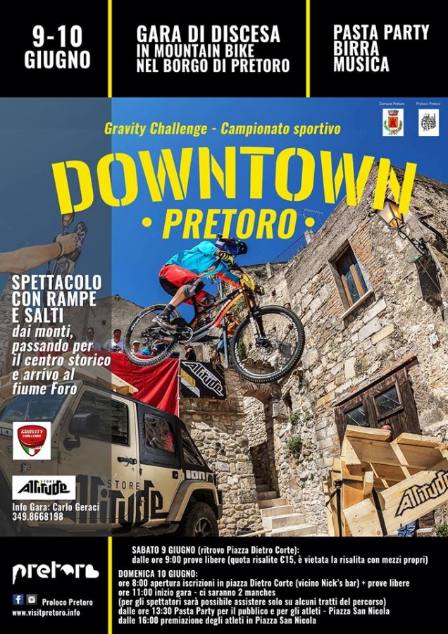Pretoro, il borgo oggetto della rivalutazione turistica sulla Majella, ha eletto domenica 10 giugno come data per la manifestazione sportiva che da tre anni si svolge nel paese, nata dalla collaborazione tra Comune, proloco e Attitude Team: Downtown.