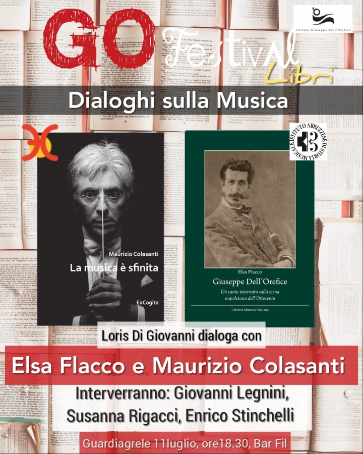 Giovedì 11 luglio alle 18:30, presso Bar Fil , nell’ambito del Guardiagrele Opera Festival verranno presentati i nuovi libri di Elsa Flacco e Maurizio Colasanti, accomunati da un tema che interessa qualsiasi lettore e ascoltatore: si tratta della prima presentazione per due testi che, in modo diverso, raccontano storie e affrontano questioni che coinvolgono il mondo della musica.