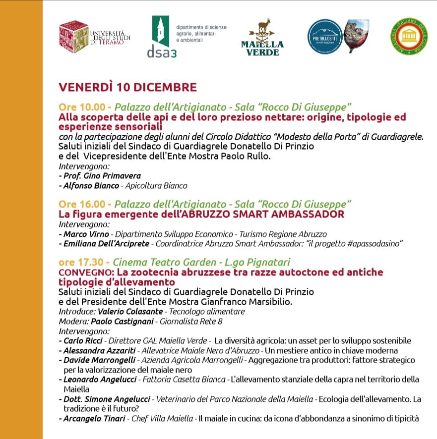 Immancabile sarà l'esposizione delle eccellenze gastronomiche abruzzesi opera della maestria dei produttori locali che sapranno guidare i visitatori in un vero tour gastronomico.