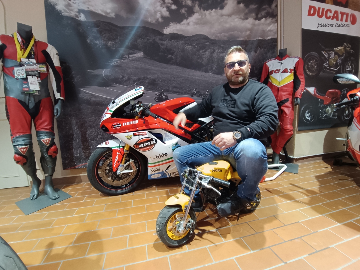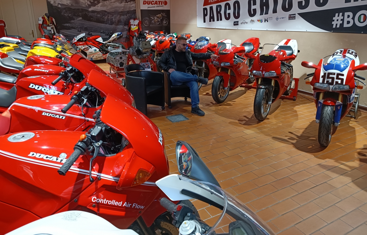 Dopo questa chiacchierata ci porta nel paradiso dei motori dove abbiamo l’opportunità di vedere Ducati a profusione, macchine da pista, auto per nostalgici, aerei ed elicotteri. Ci chiede cosa desideriamo fare e ne approfittiamo per fare un giro in elicottero, un’occasione di questo tipo non capita molto spesso.