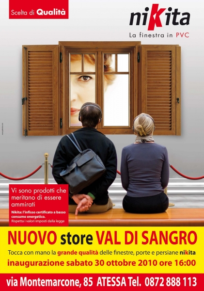 Nikita, azienda leader nella realizzazione di serramenti in pvc con sede operativa a Filetto, Zona Industriale Brecciarola, sabato 30 ottobre alle ore 16.00 inaugura il nuovo store Val di Sangro, in via Montemarcone 85 ad Atessa.