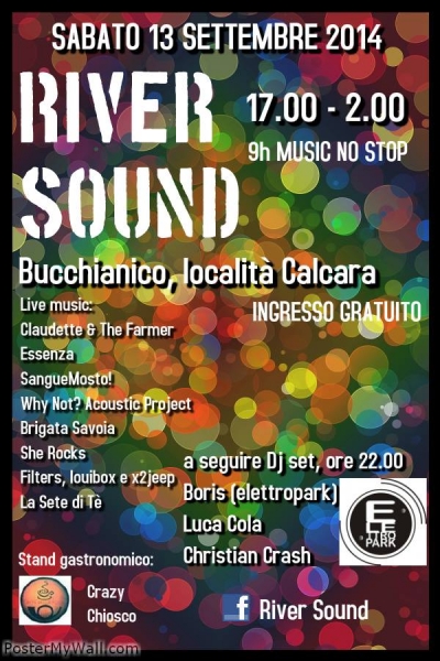 Dall'idea di accompagnare con la buona musica il ritmo naturalmente offerto della corrente del fiume Foro, nasce il River Sound festival, che si terrà proprio sulle rive del corso d'acqua nei pressi della Calcara di San Camillo a Bucchianico sabato 13 settembre 2014 a partire dalle ore 17.00.