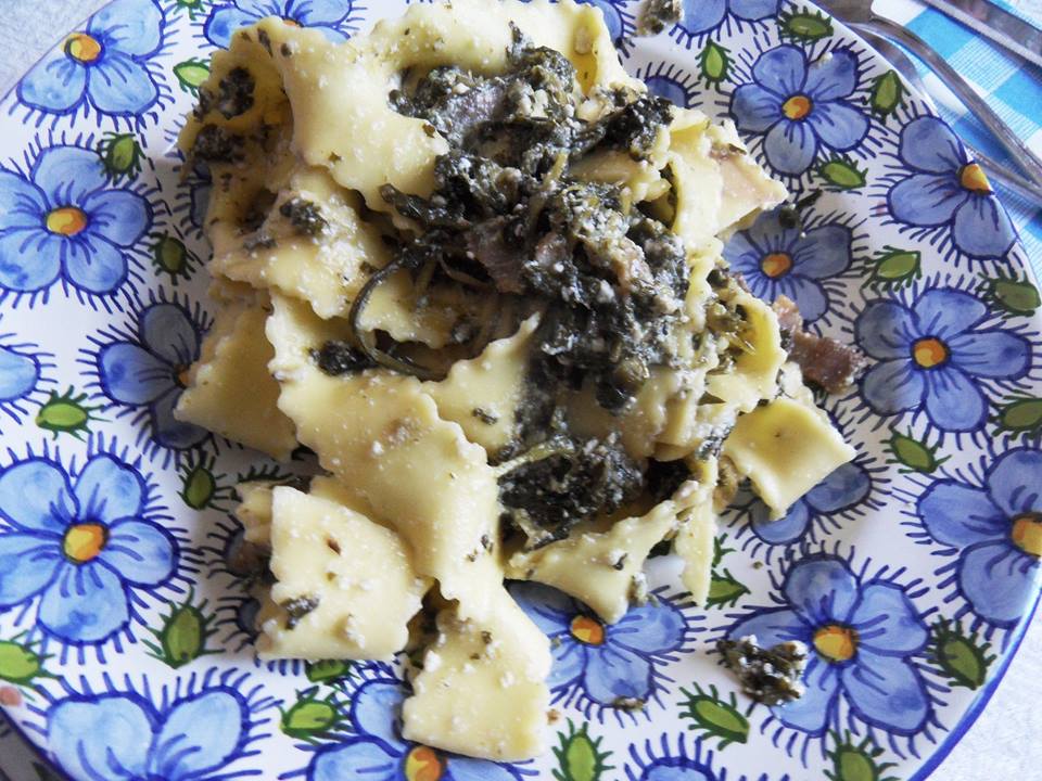 Lahanelle con cascigni, ricotta di mucca, qualche pezzetto di pancetta tesa, pecorino stagionato per spolverare.