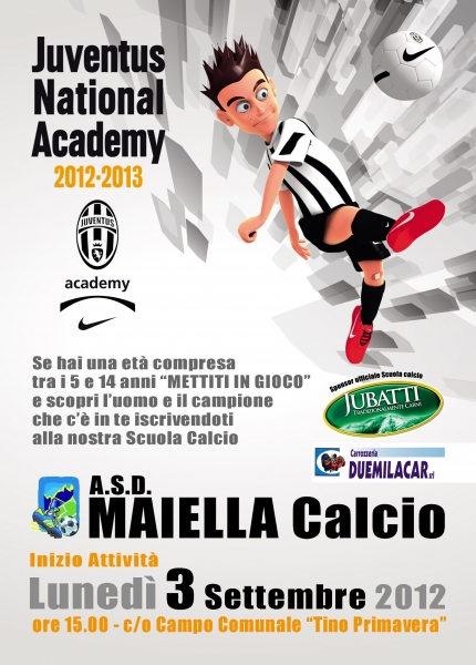 L’ASD Maiella Calcio informa che Lunedì 3 Settembre 2012 alle ore 15 presso il Campo Comunale “Tino Primavera” prenderanno il via le lezioni di Scuola Calcio per la stagione 2012/2013.