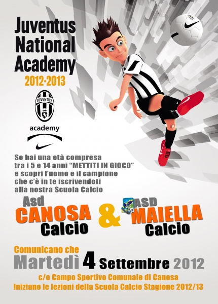 L’affiliazione per il 4°anno consecutivo alla Juventus permette di garantire serietà, professionalità, competenza, divertimento e tutela per tutti i ragazzi, ai quali viene garantita la visita medica gratuita comprensiva di elettrocardiogramma, oltre ovviamente ad un ambiente attrezzato e sano.
